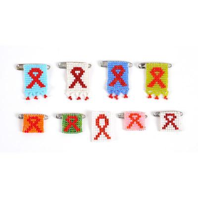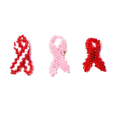 Beaded Pin: Twisted Ribbon (AIDS - Red a...